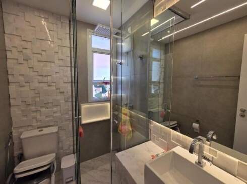 Sala ampla para 02 ambientes com piso em porcelanato, rebaixamento em gesso, iluminação planejada, painel de TV, 03 quartos confortáveis com armários sendo uma suíte com painel de TV, espaço home office, banheiro social, cozinha espaçosa com bancada em granito e armários planejados, despensa, área de lavanderia independente e banheiro de serviço.